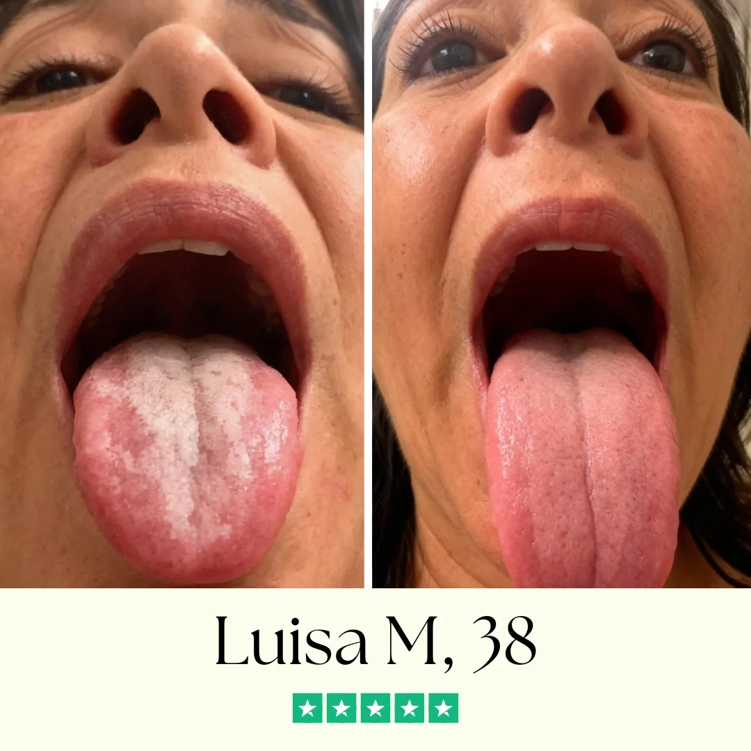 "Dos años con candidiasis oral. Cada tratamiento funcionaba solo temporalmente. $15,000 pesos gastados en doctores y medicamentos que no resolvían nada. Estas gotas fueron la diferencia. En tres semanas mi lengua empezó a verse normal. Cuatro meses después está completamente limpia. Puedo comer sin dolor y hablar sin vergüenza. Esto sí funcionó de verdad."